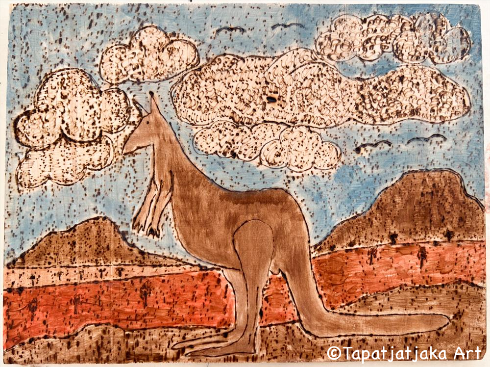 Size and medium: 21.5 x 29 cm; engraved plywood block with acrylic glaze overlay Painting