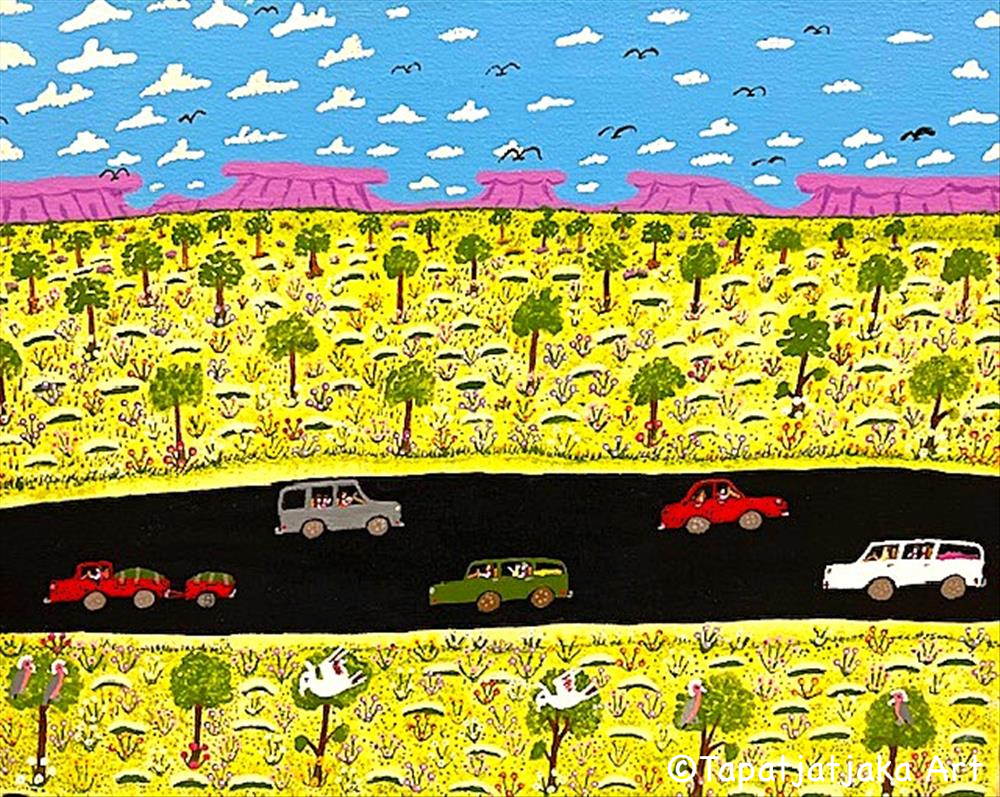 Winter time, tourist tjuta, many people are travelling up the highway.