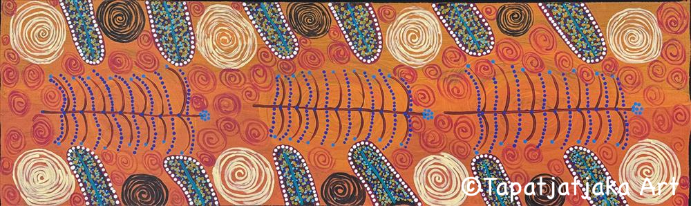 Marlene is a prolific artist and enjoys working across several mediums including batik, painting, ceramics, felting and punu. She played a role in the designing and batiking of several fabric lengths for the Central Australian Aboriginal Women’s Choir tour of Germany in 2015   Marlene enjoys experimenting with ideas and mediums and very much enjoys the reactions of others with the materials she has chosen to use.  Her work can create much curiosity and laughter to begin but is always greatly admired when finished.